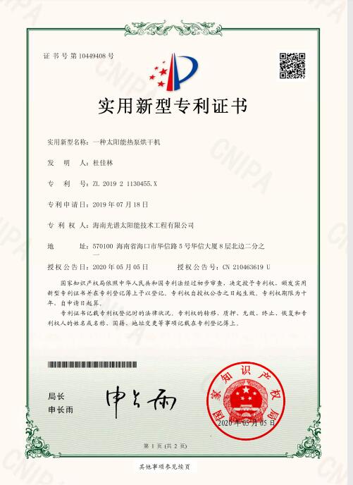 近日,我司申報的“一種太陽能熱泵蒸汽發生裝置”發明專利通過審查,獲得國家知識產權局授予的發明專利證書,授權專利號為“ZL201911126309.4”。 此次獲得國家頒發的專利證書,是對海南光譜公司創新實力的認可,代表著我司知識產權取得了突破性進展,為公司的持續性發展提供強有力的科技創...